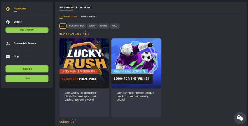 - Bonus uten innskudd-alternativer hvis aktuelt